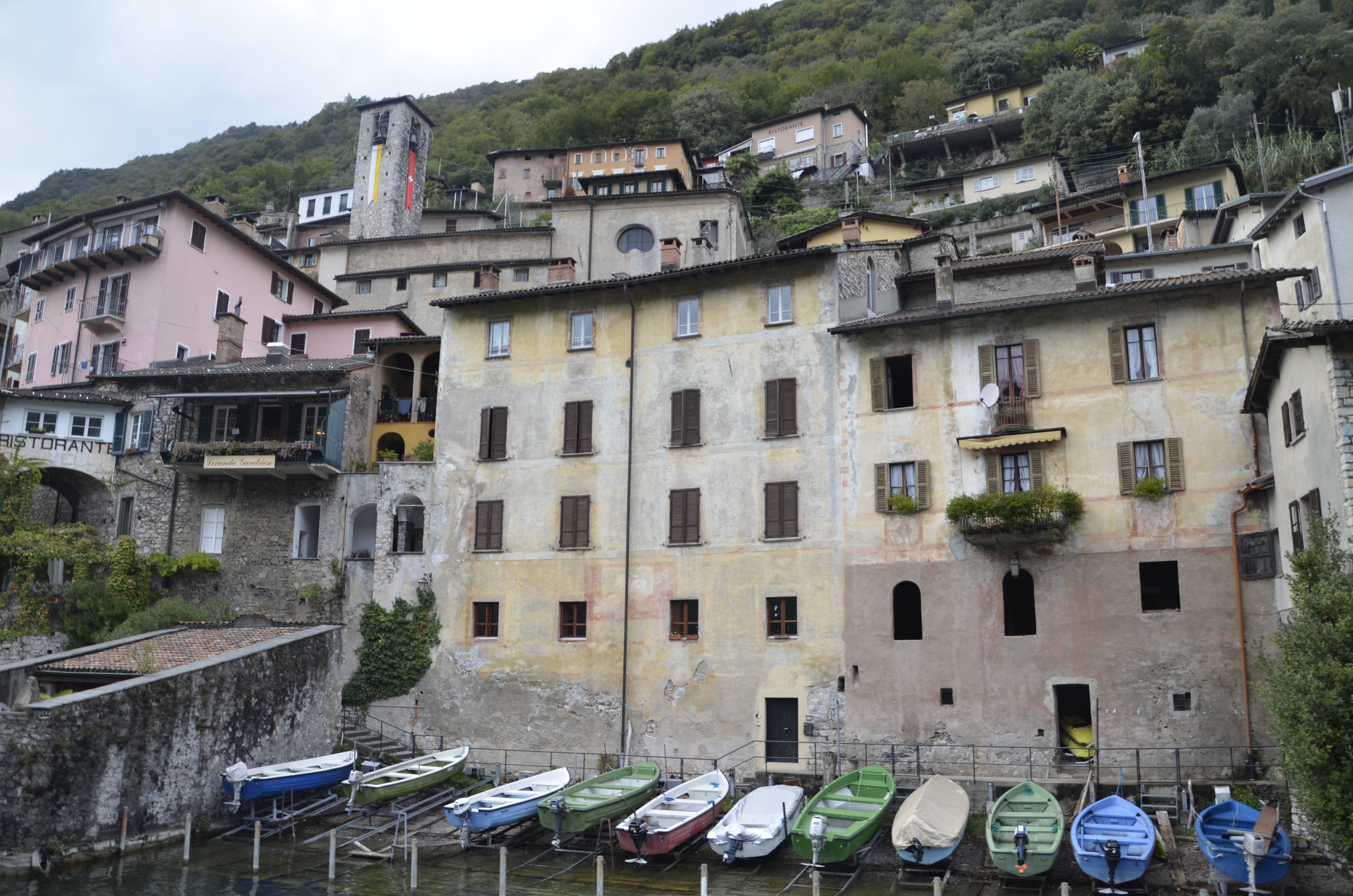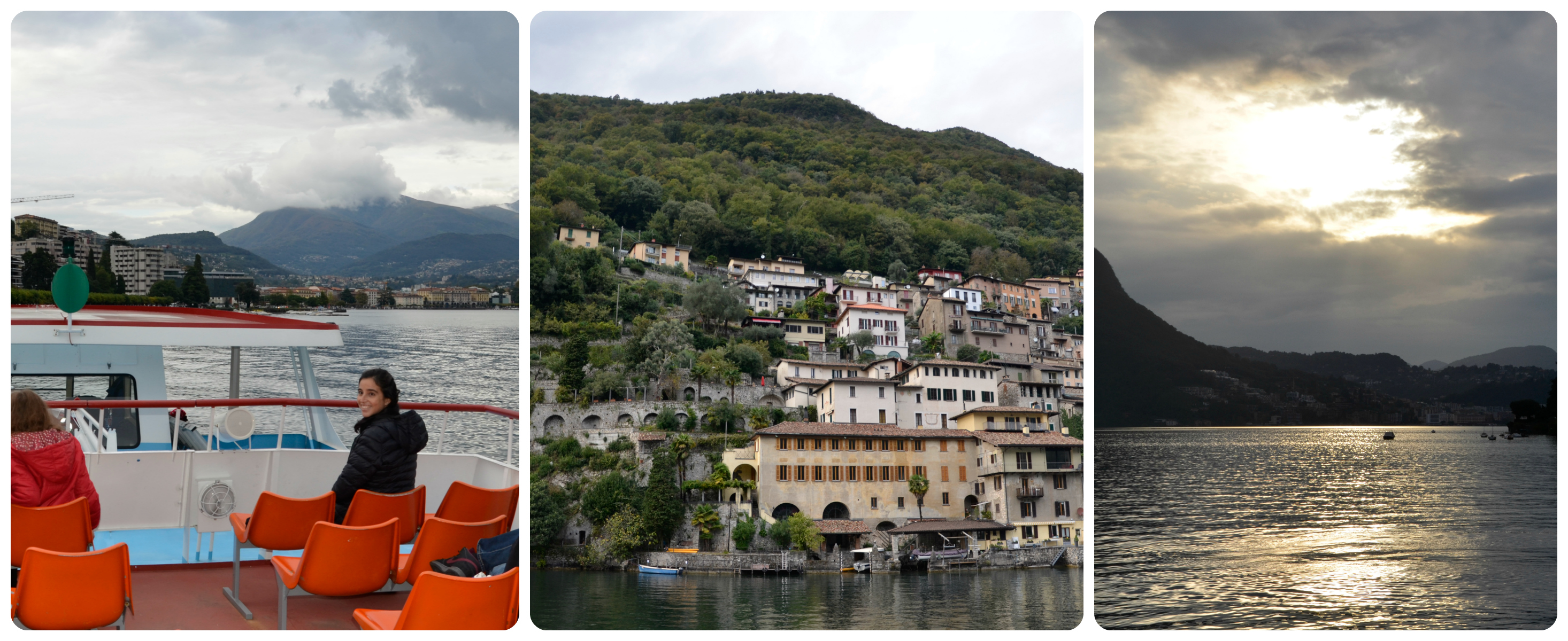 Más tarde hicimos un paseo en barco alrededor del lago Lugano. El paisaje es muy lindo, y se puede ver que es un destino muy de verano. Nuestro súper paseo no era un tour, sino más bien que nos tomamos la “micro”, y en muchas de las paradas no había nada (ni nadie), eran como hoteles de temporada, mas del estilo hostería. Me gusto harto el paseo, aunque hacía un poco de frío (la loca me fui arriba, en la parte sin techo donde corría un viento helado, pero la vista era mejor).