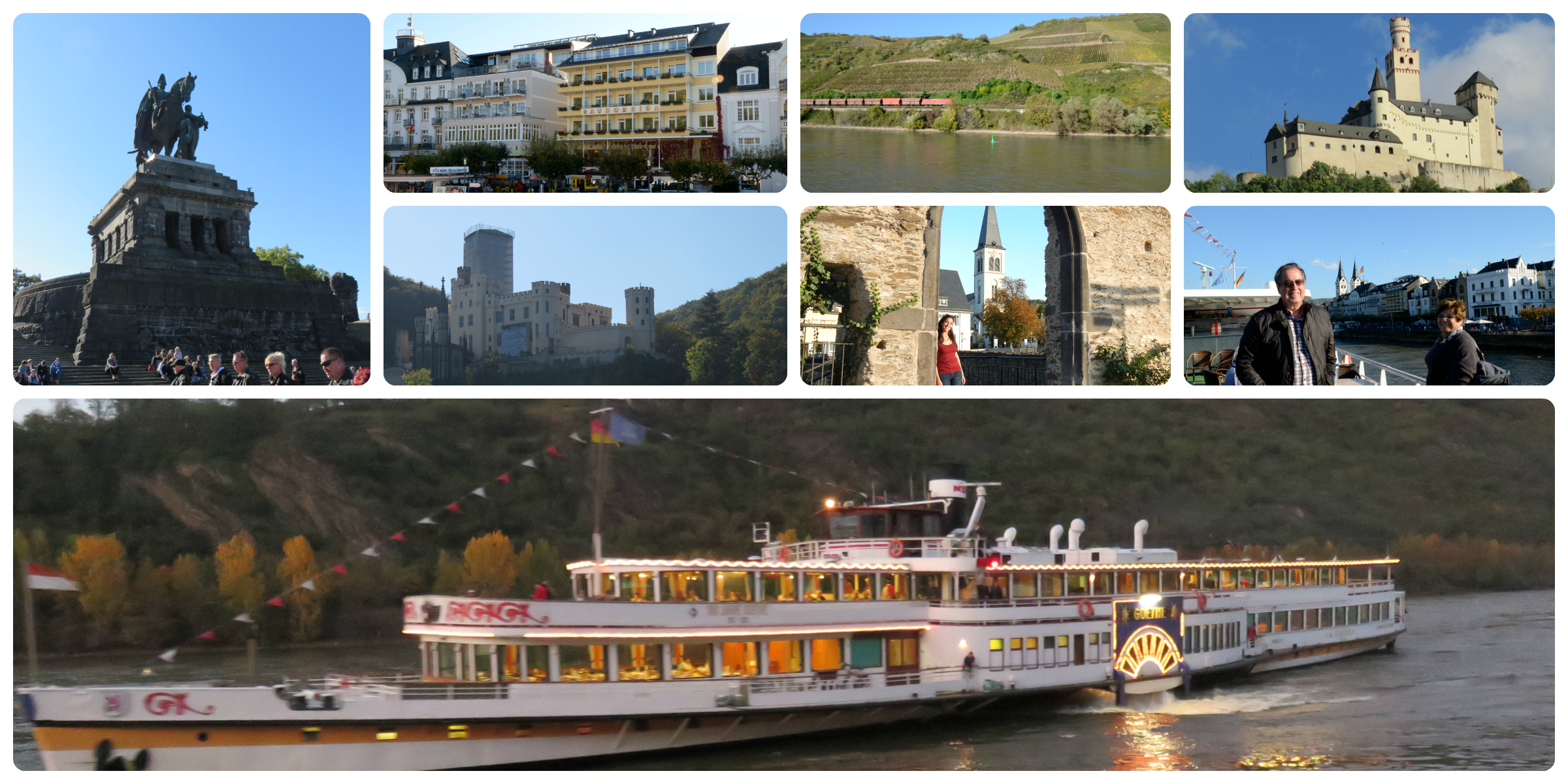 El resto del día fue turístico, fuimos a Koblenz, donde hicimos un paseo por el río. El paisaje es muy lindo, vas viendo distintos pueblos y castillos a la orilla del río y finalmente nos bajamos en Boppard, un pueblito que como era domingo estaba prácticamente todo cerrado, así que nos dedicamos a caminar por ahí y nos tomamos un café. El viaje de regreso fue lindo también porque vimos los mismos pueblitos y castillos pero de noche e ilumonados.