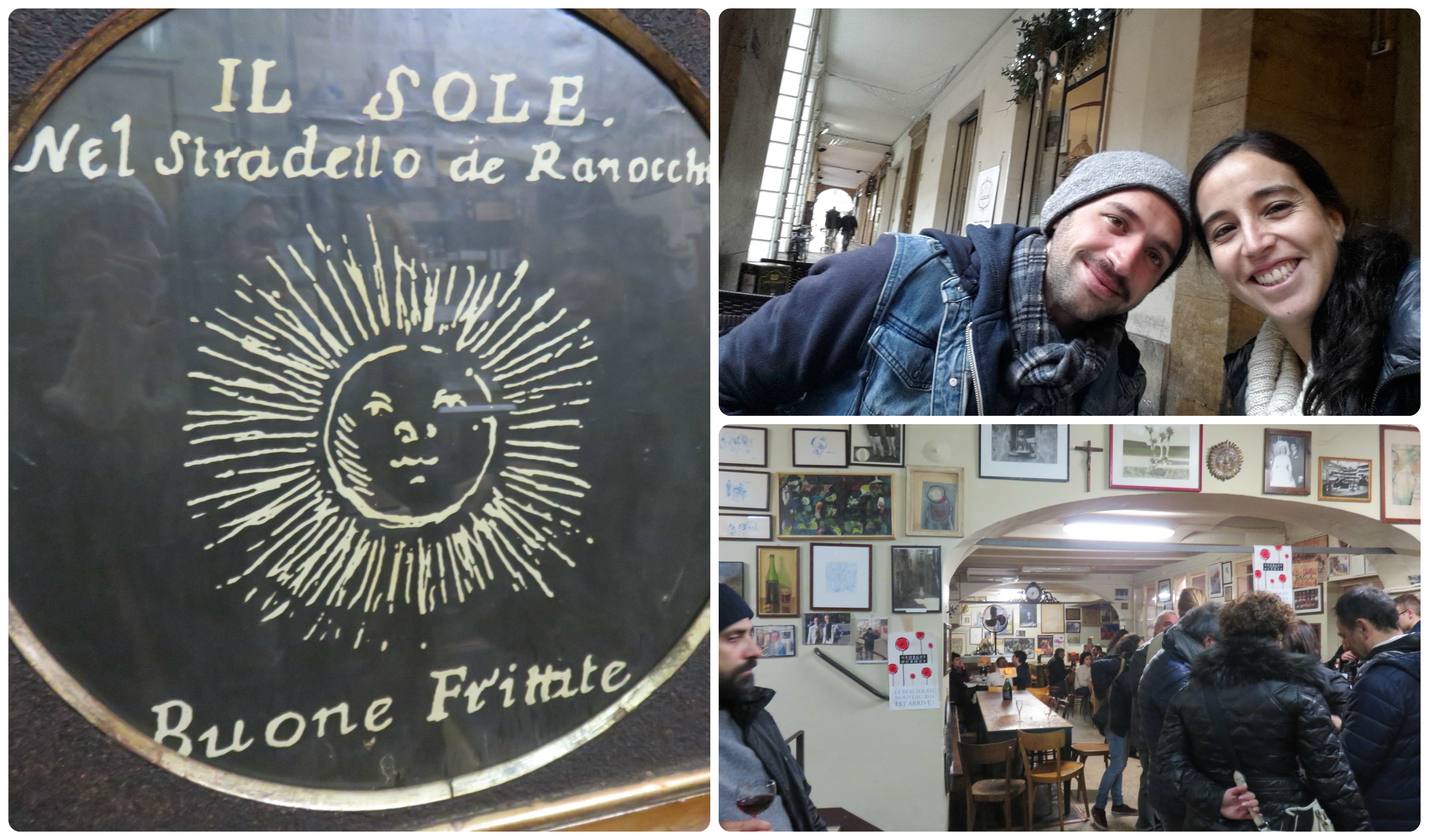 Bologna, al igual que la mayoría de las ciudad acá, tiene una torre desde la que se puede ver la ciudad, pero no fui capaz de subirla! Así que quedó pendiente, obligada a volver algún día. Después de caminar y conocer los secretos de la ciudad, me llevó a un lugar típico de ahí (de hecho Roberto me lo había mencionado), es un lugar donde es obligación comprar algo para tomar (es lo único que venden) y tu puedes llevar lo que quieras para comer, cuando fuimos era bastante temprano y Federico me explicada que ese lugar se llena! Y con gente de todas las edades y si quieres ir más tarde lo mejor es reservar una mesa. Muy entretenido.