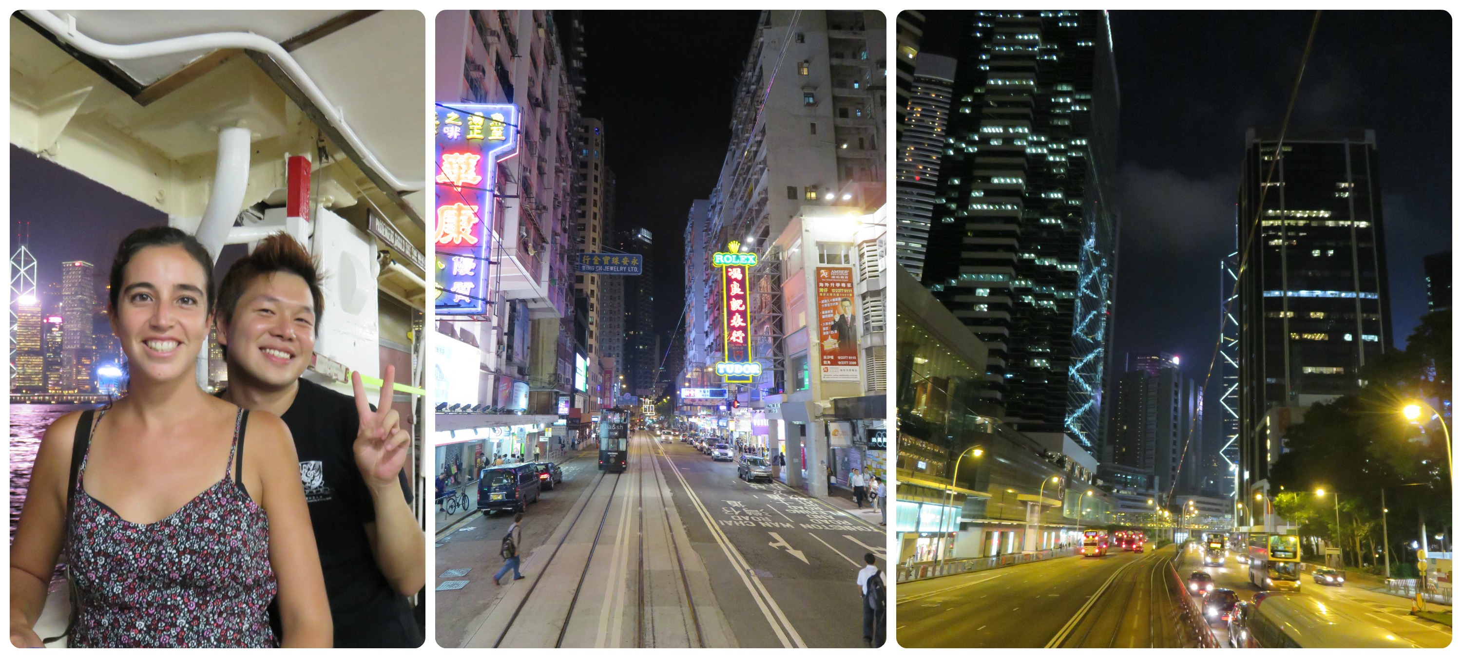 El primer día recorrí los alrededores: la avenida de las estrellas (con estrellas de cine local, sus manos en el piso y todo). Esto era lo único que conocí de HK en mis viajes, y fue rico hacerlo relajada, sacando fotos, disfrutando las vistas y no corriendo por tener que llegar a una reunión con proveedores. De ahí me junte a almorzar con la Caro nuevamente y me topé con más gente de la empresa, igual divertido. El plan para la tarde fue caminar por Nathan Road desde la orilla hasta casi el inicio. Está llena de comercio, gente que se acerca a ofrecerte copias de todo, masajes, en la noche mucha luz. Al final me demoré 1 hora y llegué justo para encontrarme con un amigo coreano que conocí en Yangón y que está en HK estudiando. Comimos dim sum, algo típico de acá y de ahí cruzamos en Ferry a la isla de Hong Kong (yo me estoy quedando en Kowloon), tomamos el tram (una especie de tranvía) y vimos la ciudad de noche, me encantan las luces! Soy toda una huasa! Y finalmente subimos por la escalera mecánica más larga en la que he estado. Bueno más que escalera es una plataforma (como la de los supermercados) y aunque tenía mini paradas era larguísima. Y en las mañanas (tipo 8 a 10) esa escalera baja, por toda la gente que va a trabajar, según los cartelitos, se demora 20 minutos en darse vuelta totalmente.