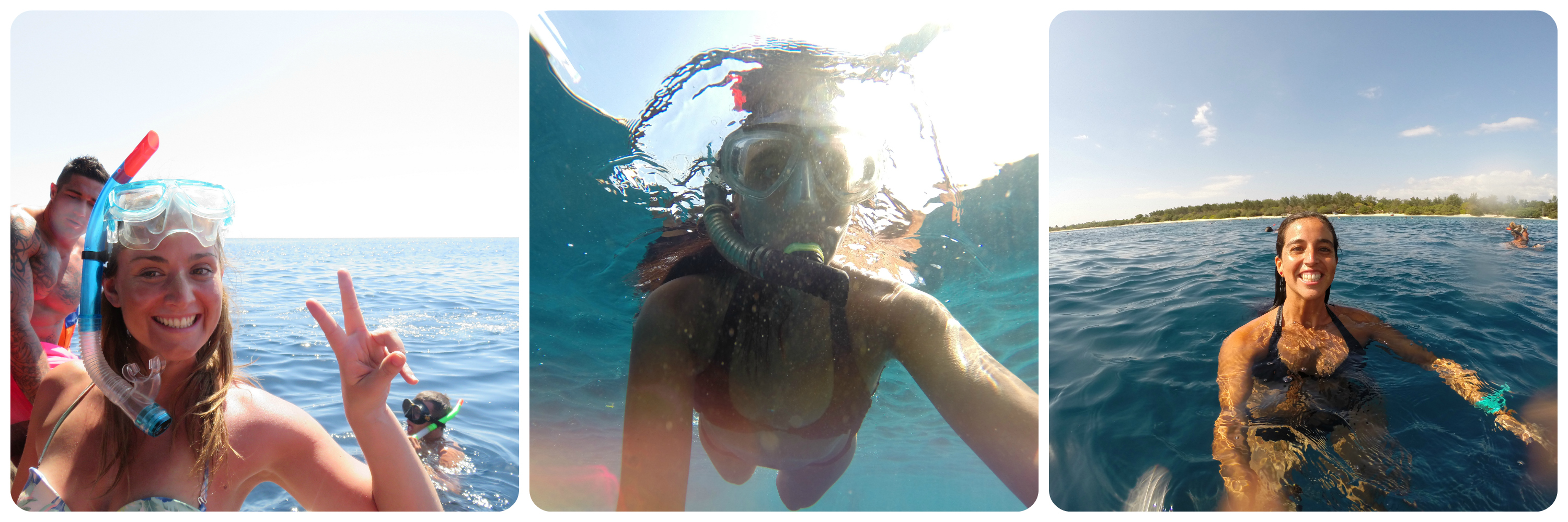 El domingo hicimos el paseo de snorkel, y definitivamente estar debajo del agua viendo peces no es lo mío. En El Nido lo hice, y mi sensación final fue de felicidad porque lo logré, pero mientras estaba en el agua nunca estuve cómoda, a pesar que yo estaba en el sector de pocos peces, en cambio acá en las Gili fuimos a un punto donde no me podía “escapar” y no lo pasé tan bien, traté de sacarme un par de fotos, pero creo que no lo intentaré más, me di cuenta que lo mío es con aire: me encantó andar en moto, me encantó tirarme por paracaídas, me encantó la sensación de ir rápido en la tabla de surf, donde a pesar que me caí todo el rato y logré pararme muy pocas veces, lo pasé muy bien en el proceso. Así que resumen el resto de las paradas del botecito, me tiraba al agua sin la máscara y sólo después que la Cotty me confirmara que los peces estaban más lejos. Igual lo pasé bien, y fue buenísimo darme cuenta que no es lo mío jajajaja.